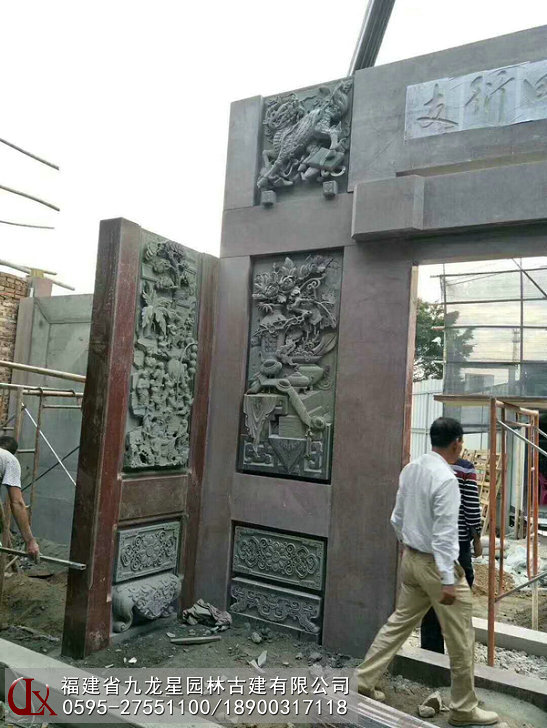 寺廟墻面浮雕壁畫安裝現場 九龍星園林古建