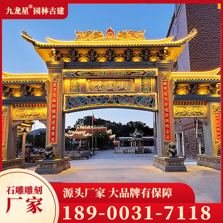 花崗巖牌坊則是由花崗巖石材制成,其特點是堅固耐用、抗風化能力強,因此適合于在各種環境下使用。牌坊的外觀則具有粗獷、豪放之感,具有強烈的現代氣息,適合于現代建筑或具有現代風格的建筑。