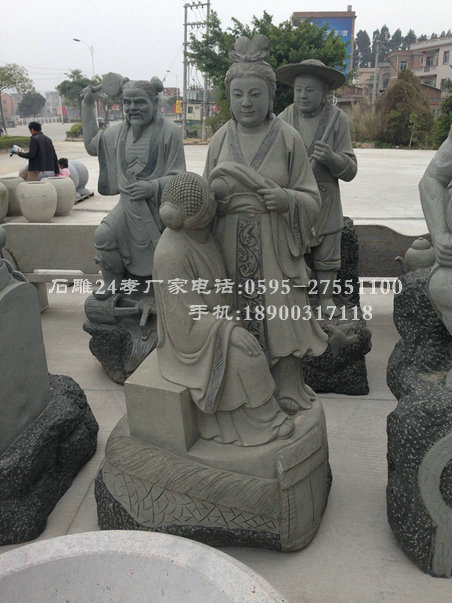 中國自古就有百善孝為先文化傳統,我們將父母給予的一切視為是需要回報的情感, 是一種相互的愛。石雕二十四孝雕塑所述說的二十四個感人故事,更體現了中華民族博大的孝道底蘊.孝感動天,親嘗湯藥,嚙指痛心,百里負米,蘆衣順母……這些主人公都是叱咤歷史風云的偉大人物,他們對人類的進步所做的貢獻或許不同,但相同的是他們都擁有一個孝心。