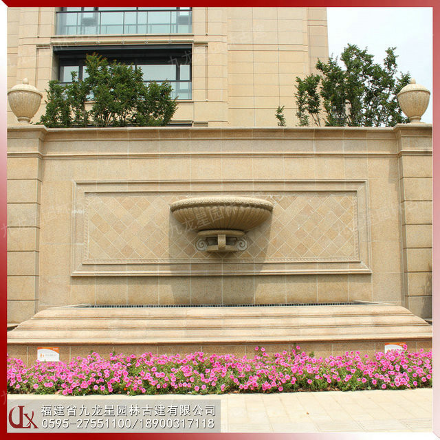 石雕半壁水缽流水景墻