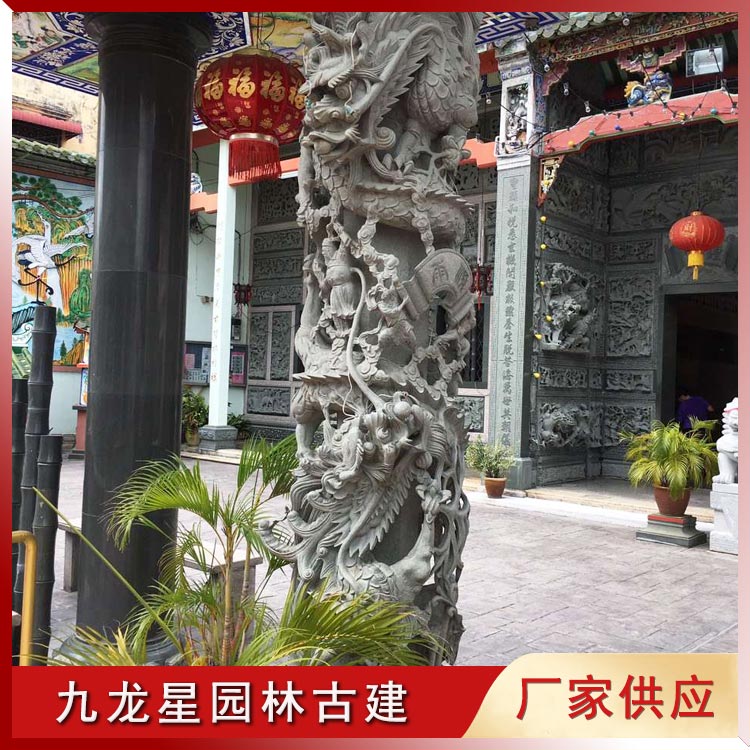 按造型分:有單龍柱、雙龍柱、滾龍柱、盤龍柱、蟠龍柱、華表柱、龍鳳柱、八仙龍柱等多種造型雕刻。