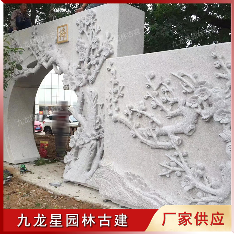 石雕梅蘭竹菊浮雕壁畫(huà) 花中四君子雕刻 九龍星